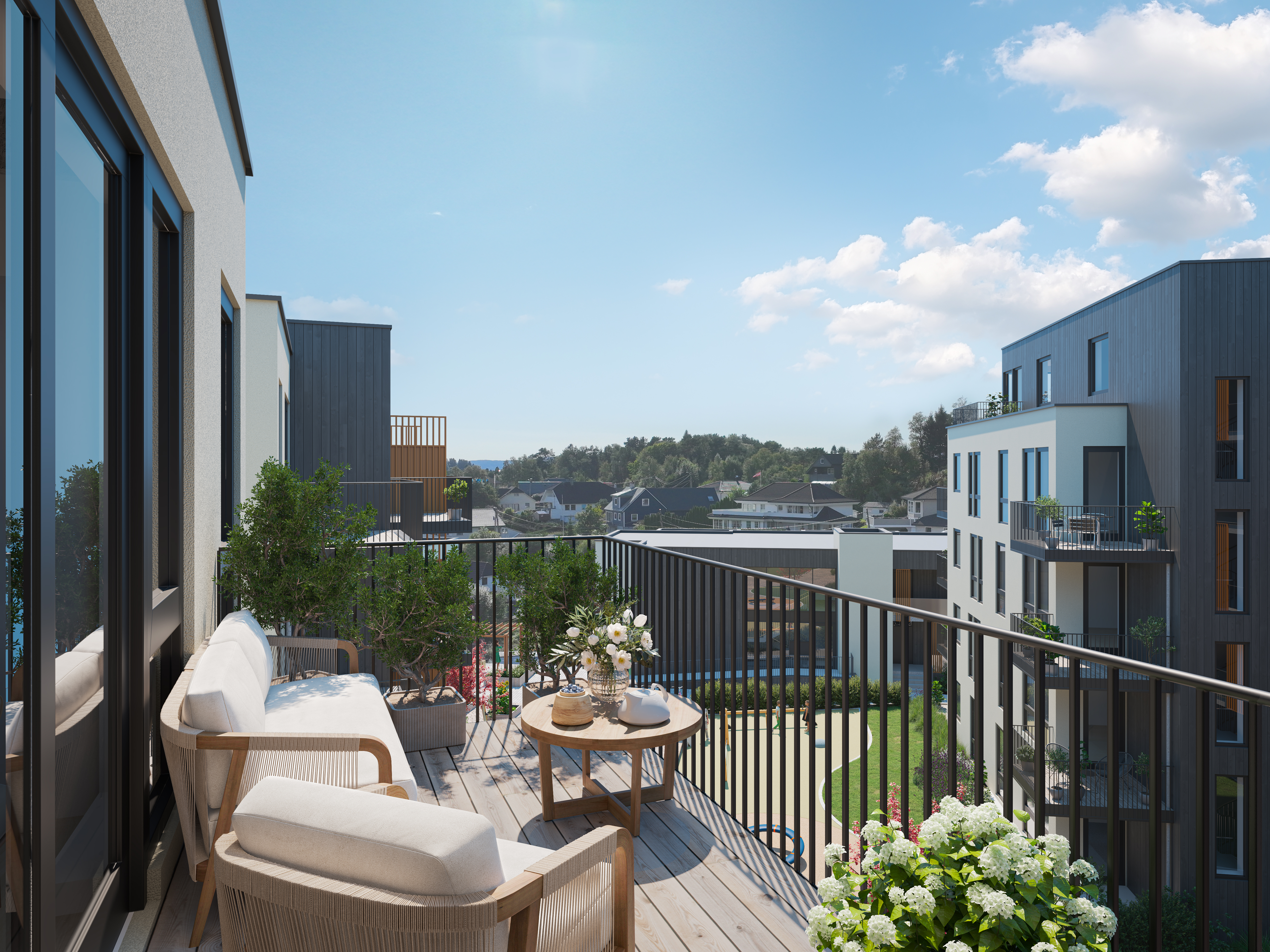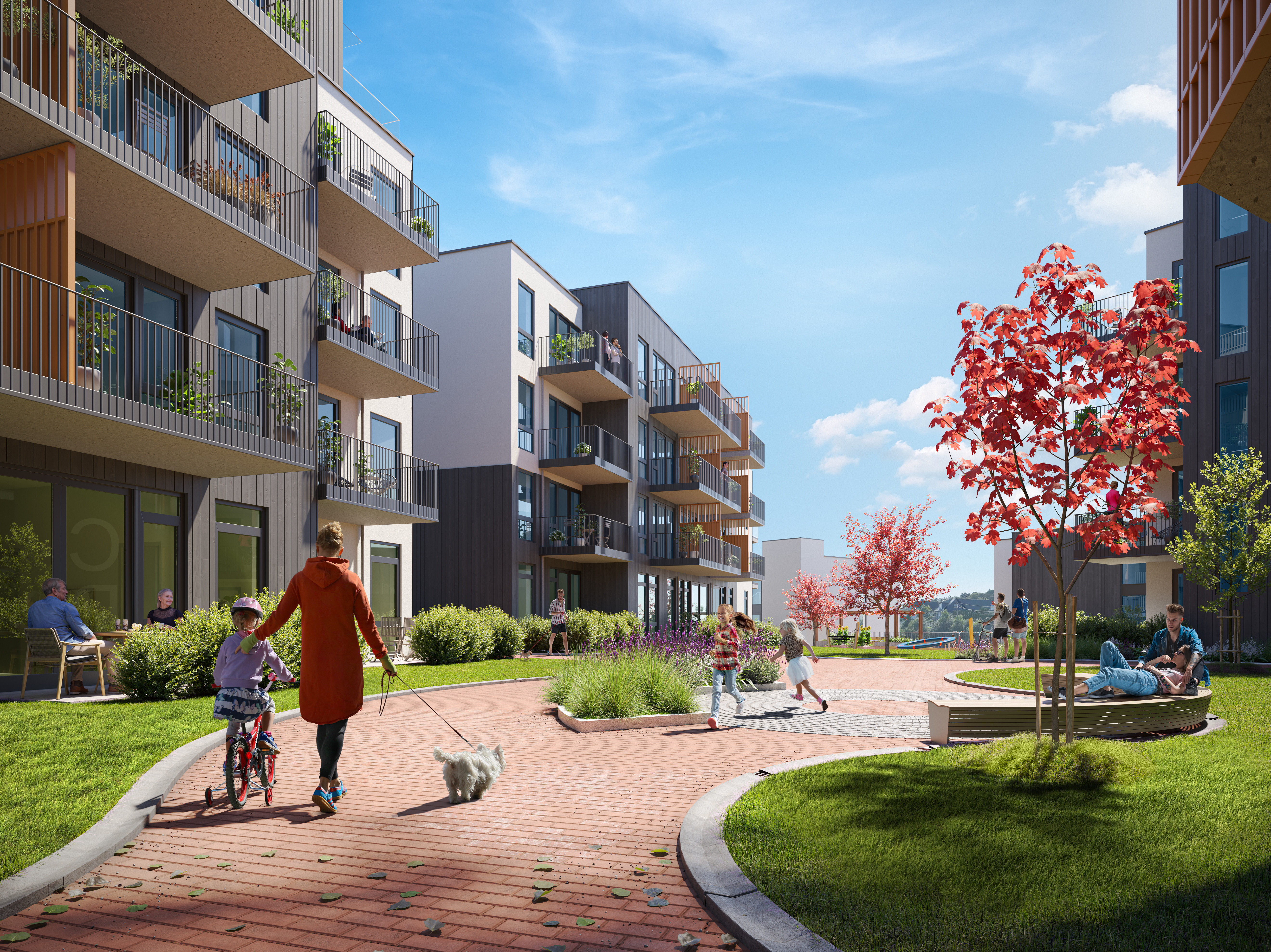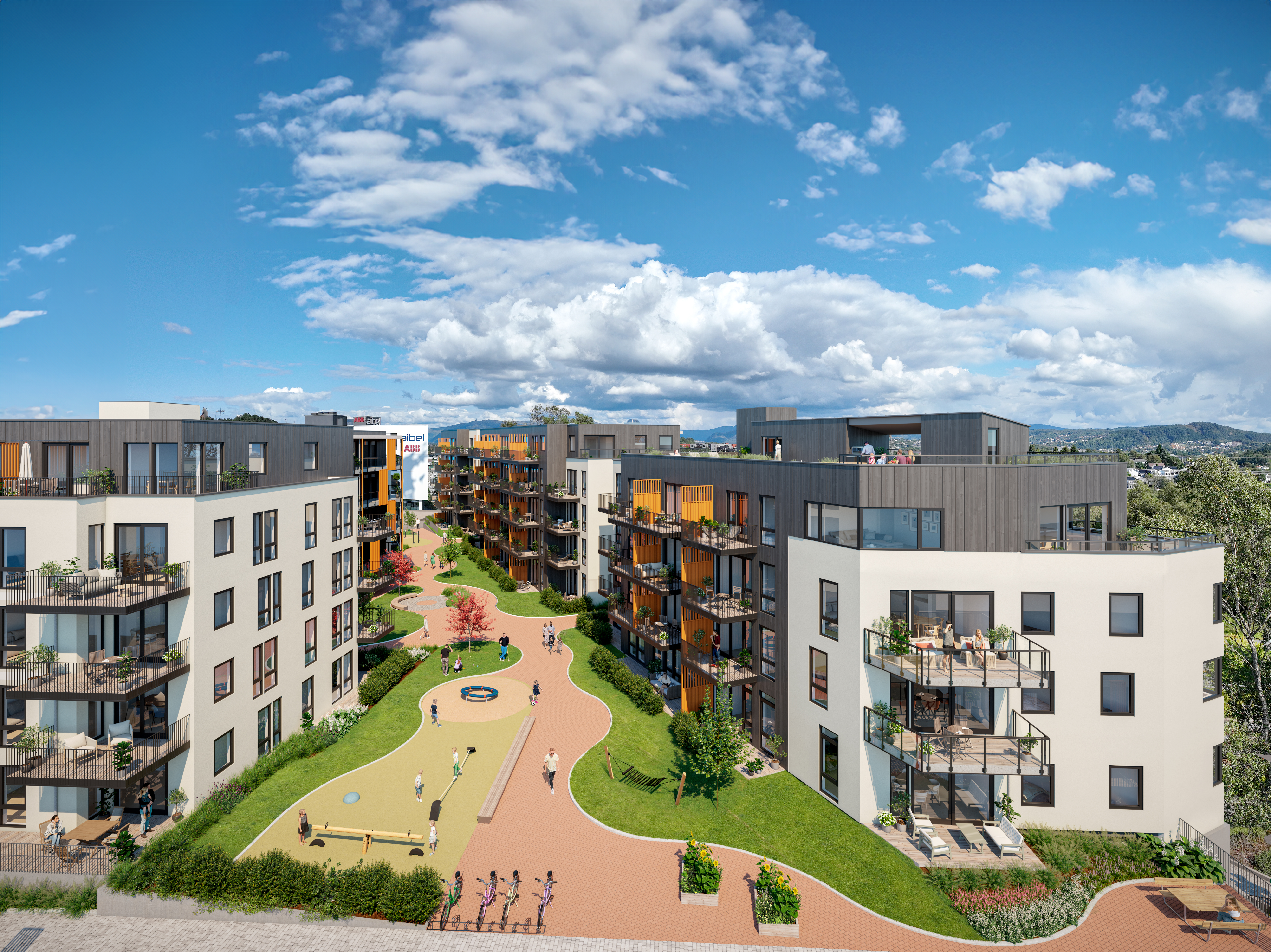 Trivsel, bærekraft og fellesskap er spesielt vektlagt i boligprosjektet.