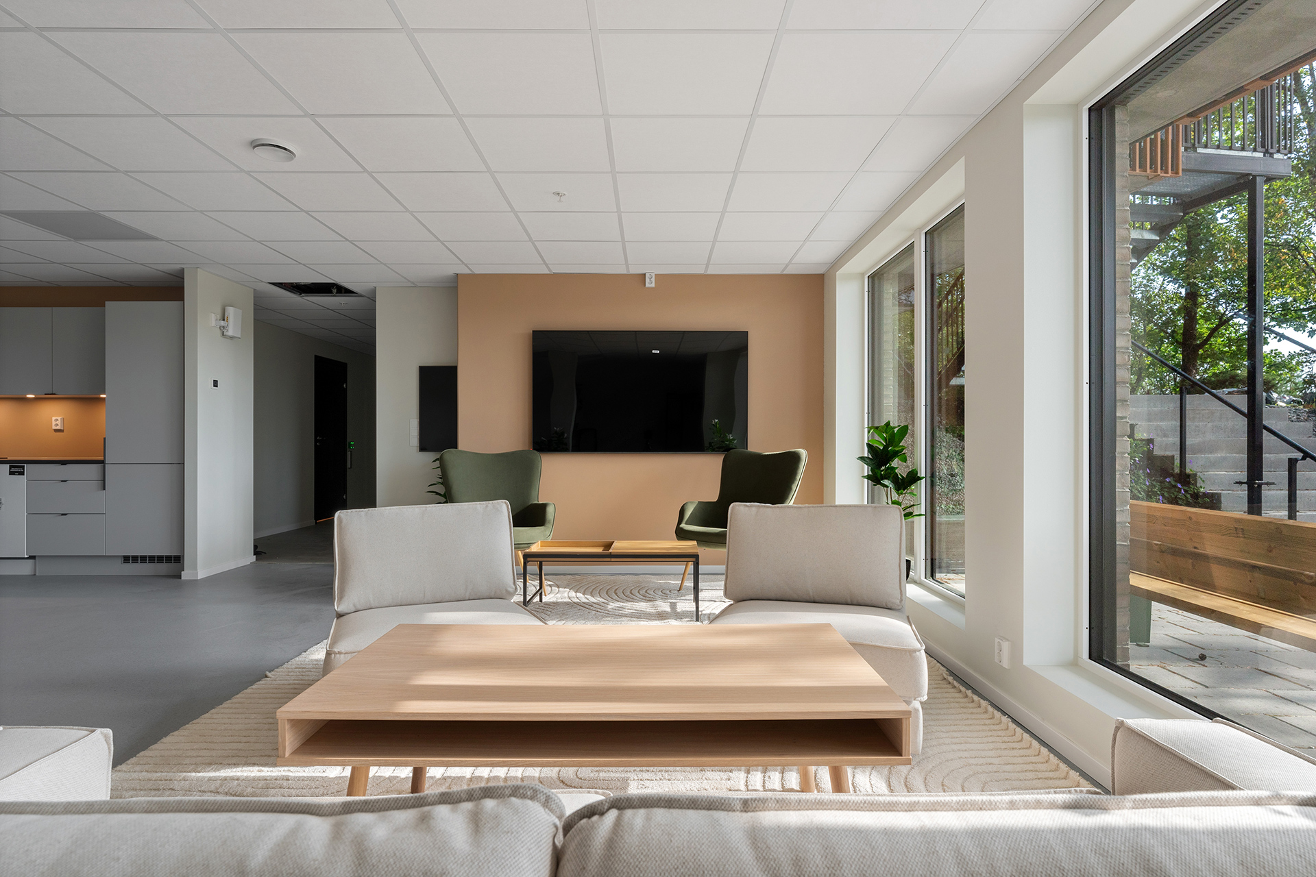 Mye er allerede ferdigstilt og de første beboerne flyttet inn før sommeren. Det er ferdig opparbeidet møblert takterrasse med utekjøkken, møblert fellesrom til interne arrangement og private selskaper, innredet treningsrom og flotte uteområder. Appen «Heime», som organiserer bruken av fellesrommene og styrker fellesskapet og trivselen i nabolaget, er også klar.