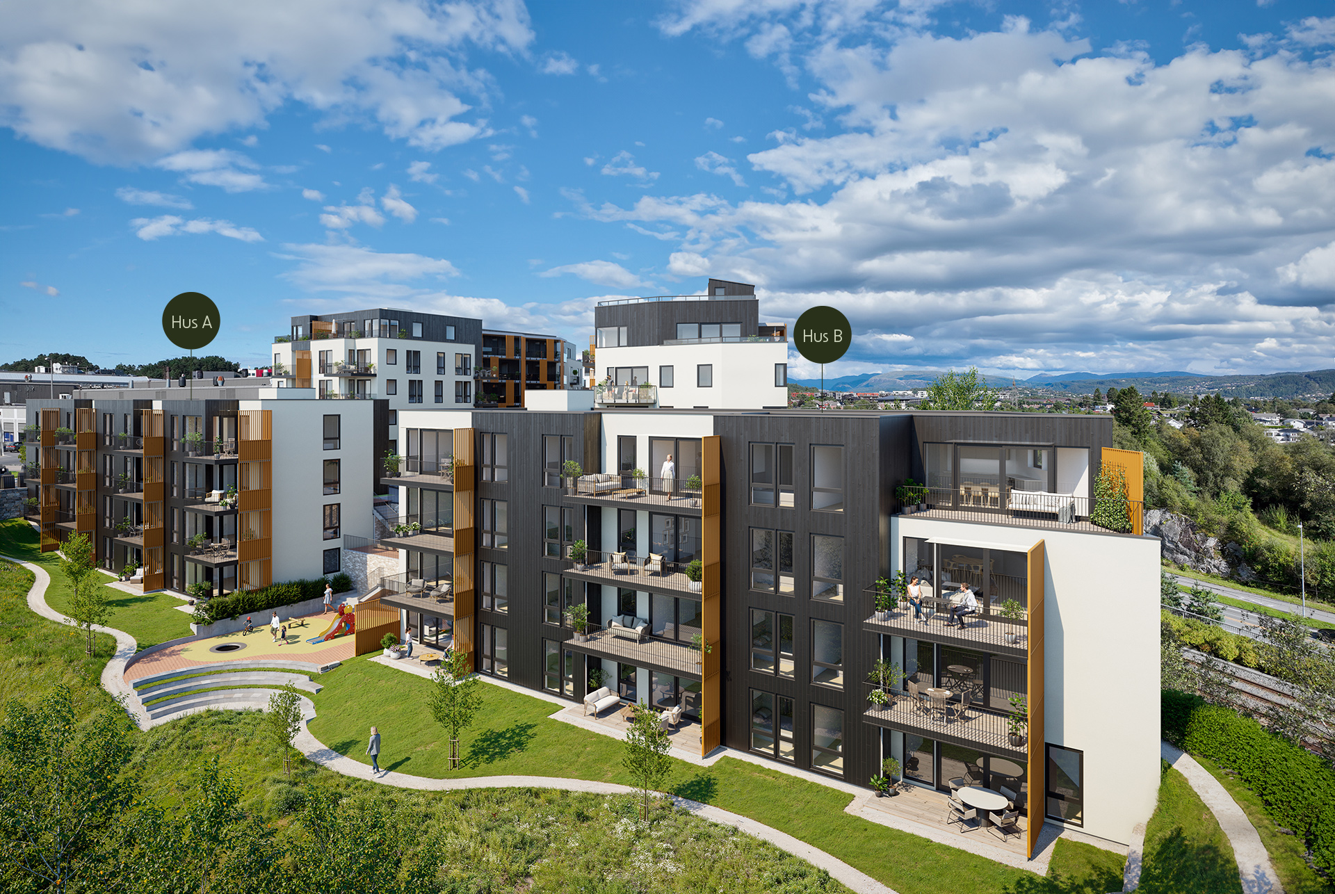Kokstad Stasjon Eikerinden ligger høyt og fritt på kollen ved bybanestoppet på Kokstad og består av totalt syv bygg og 133 boliger med mange fellesfordeler og det unike trivselskonseptet Heime (se bilder nederst i saken).
